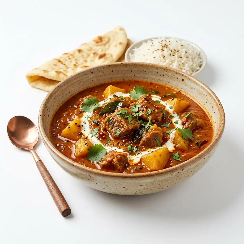 Cooked with lamb or chicken or prawn, onion pepper, almond powder, cream, coconut milk and coriander