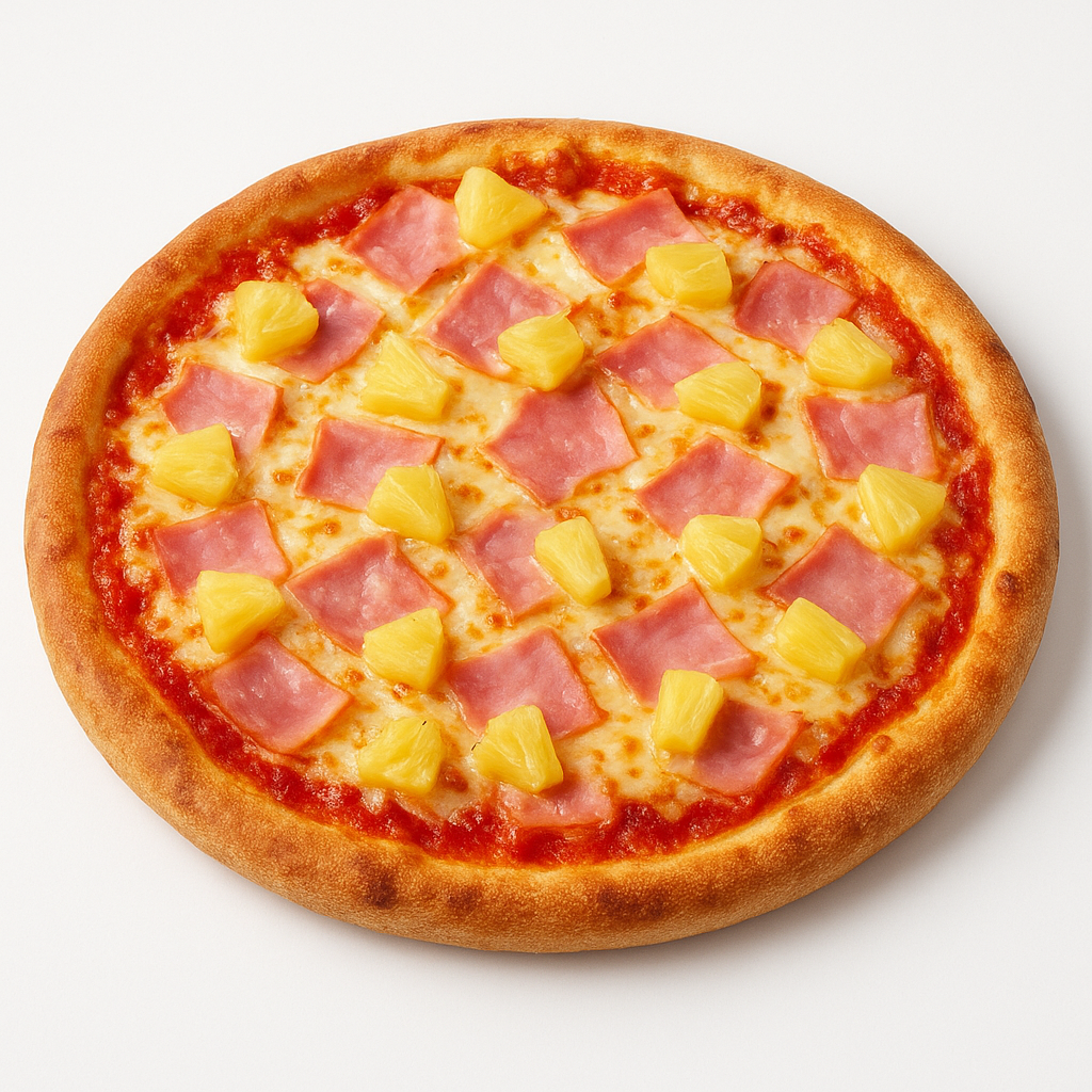 Fresh Tomato Sauce, Mozzarella, Finely Sliced Ham & Juicy Pineapple