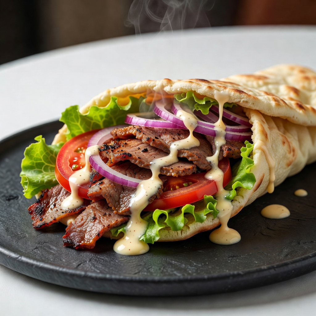 Succulent, spiced doner meat layered in a toasted bun with fresh salad and creamy house sauce, delivering a rich and satisfying flavour.