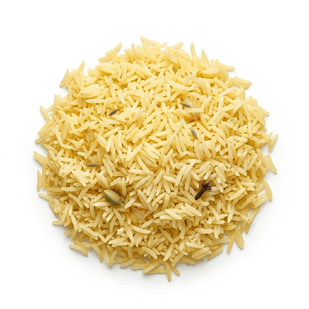 Fragrant golden pilau rice cooked with whole spices and lightly fried onions. Aromatic and flavorful.