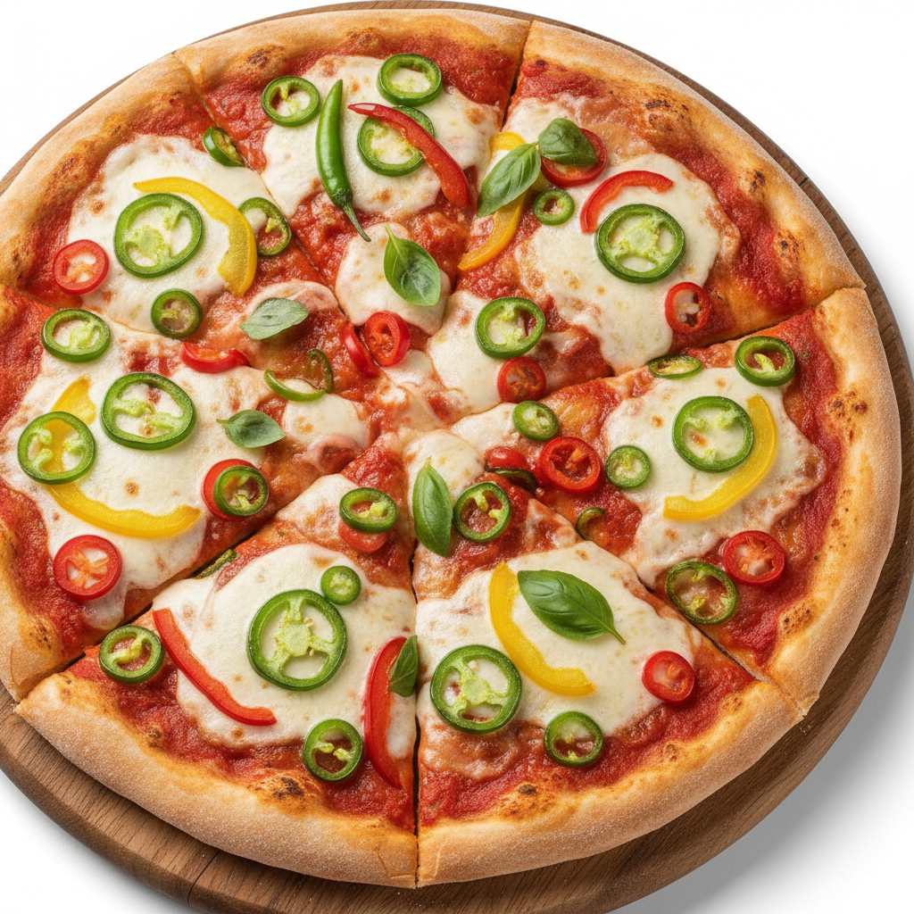 Fresh Tomato Sauce, Mozzarella, Jalapenos, Mixed Peppers & Chillies