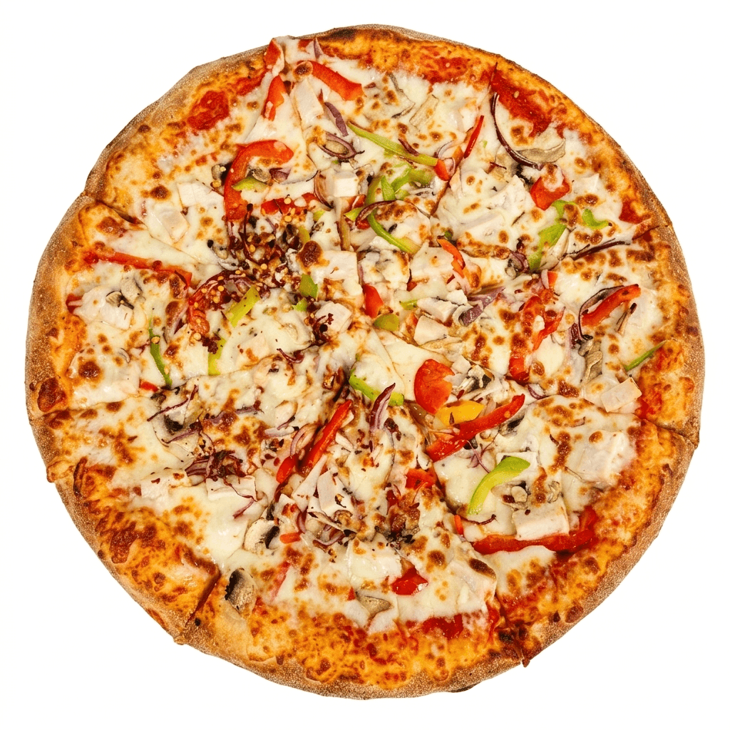 Fresh Tomato Sauce, Mozzarella, Cajun Chicken Breast & Red Onion