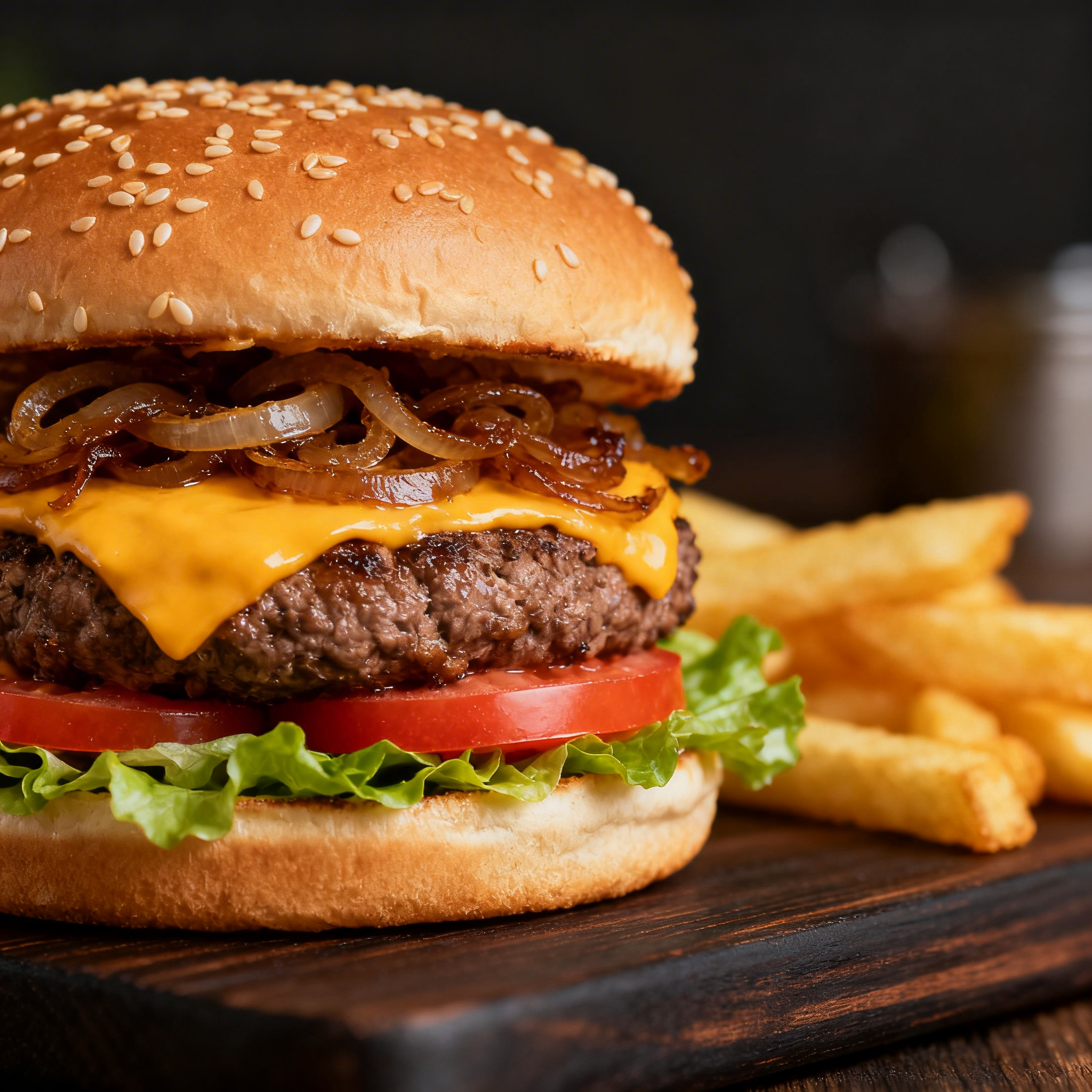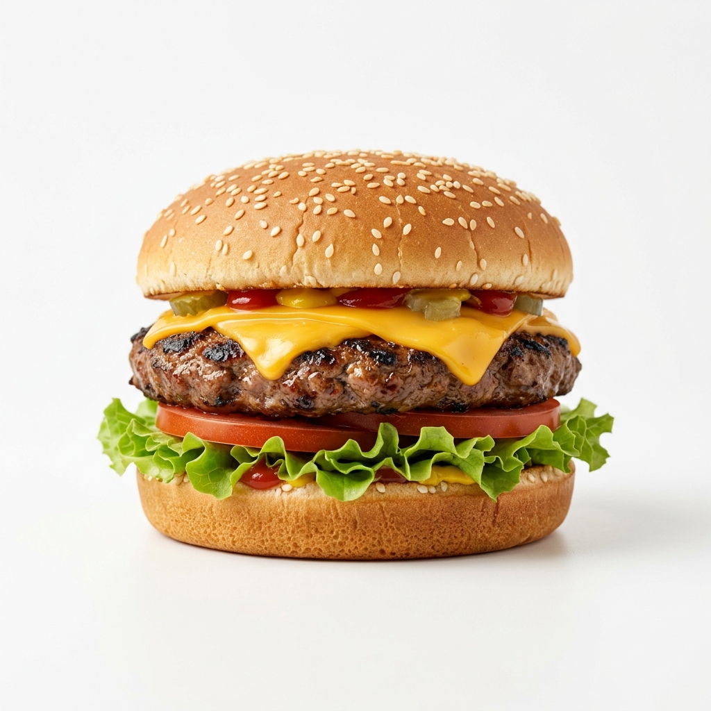 Quarter Pounder Cheeseburger (G/E/M/SO) – Flame-grilled 100% beef patty topped with melted cheese, crisp lettuce, and classic condiments in a soft bun, offering a hearty and timeless taste.