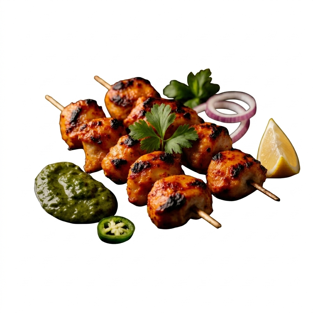 Succulent pieces of boneless chicken marinated in a blend of yogurt, aromatic spices, and herbs, then grilled to perfection in a traditional tandoor, delivering a smoky flavor and tender texture.