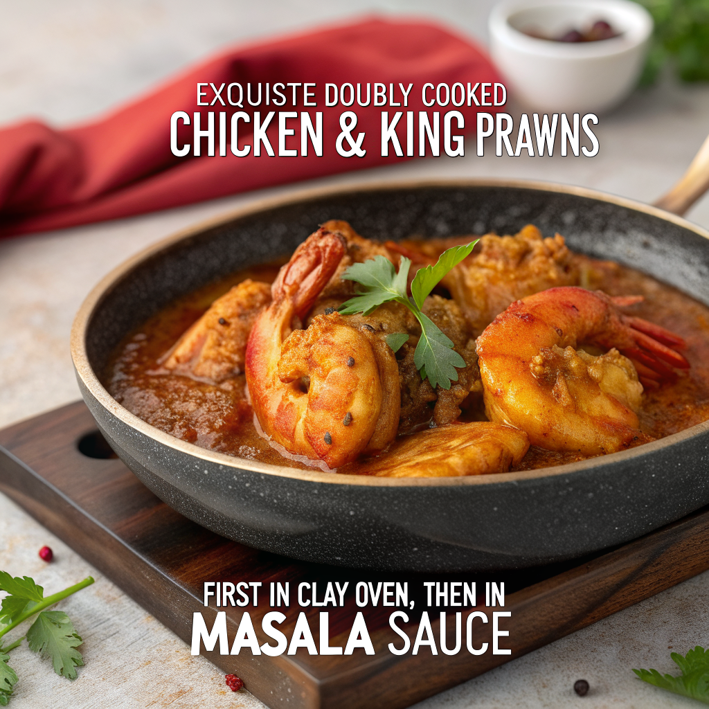 Chicken and king prawn are exquisite – they are doubly cooked: first in a special clay oven, then in an exotic masala sauce.