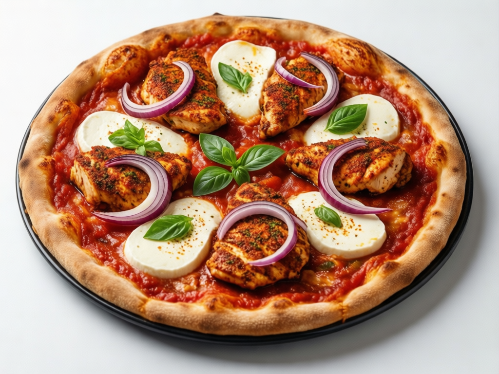Fresh Tomato Sauce, Mozzarella, Cajun Chicken Breast & Red Onion