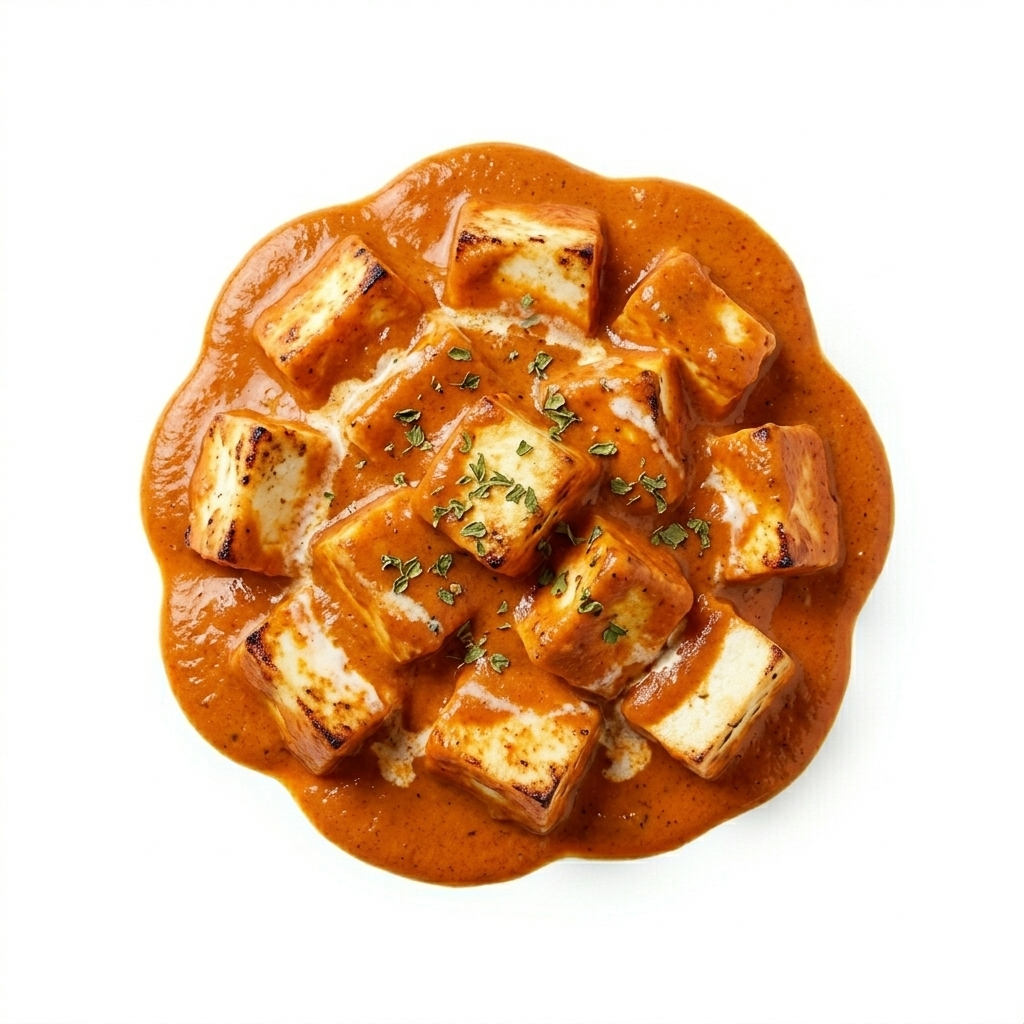 Soft, grilled paneer cubes simmered in a creamy, mildly spiced tikka masala sauce finished with a swirl of fresh cream. Rich, velvety, and utterly satisfying.